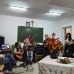 Piotrek, Adam, Hubert, Laura, Julka, Marysia przybliżyli znaczenie ważnych słów związanych ze Świętami Bożego Narodzeni. Społeczność internacka na nowo poznała historyczne znaczenie słów: ŚWIATŁO, KOLĘDA, CHOINKA, OPŁATEK w kontekście Bożego Narodzenia.. Prezentacja ta była przeplatana występem naszych skrzypaczek Krysi i Zosi, gitarzystki Alicja, ukulele Łucja i Daniel, którzy zagrali piękne kolędy. Marysia wykonała solo wzruszającą kolędę „Mario czy Ty wiesz”