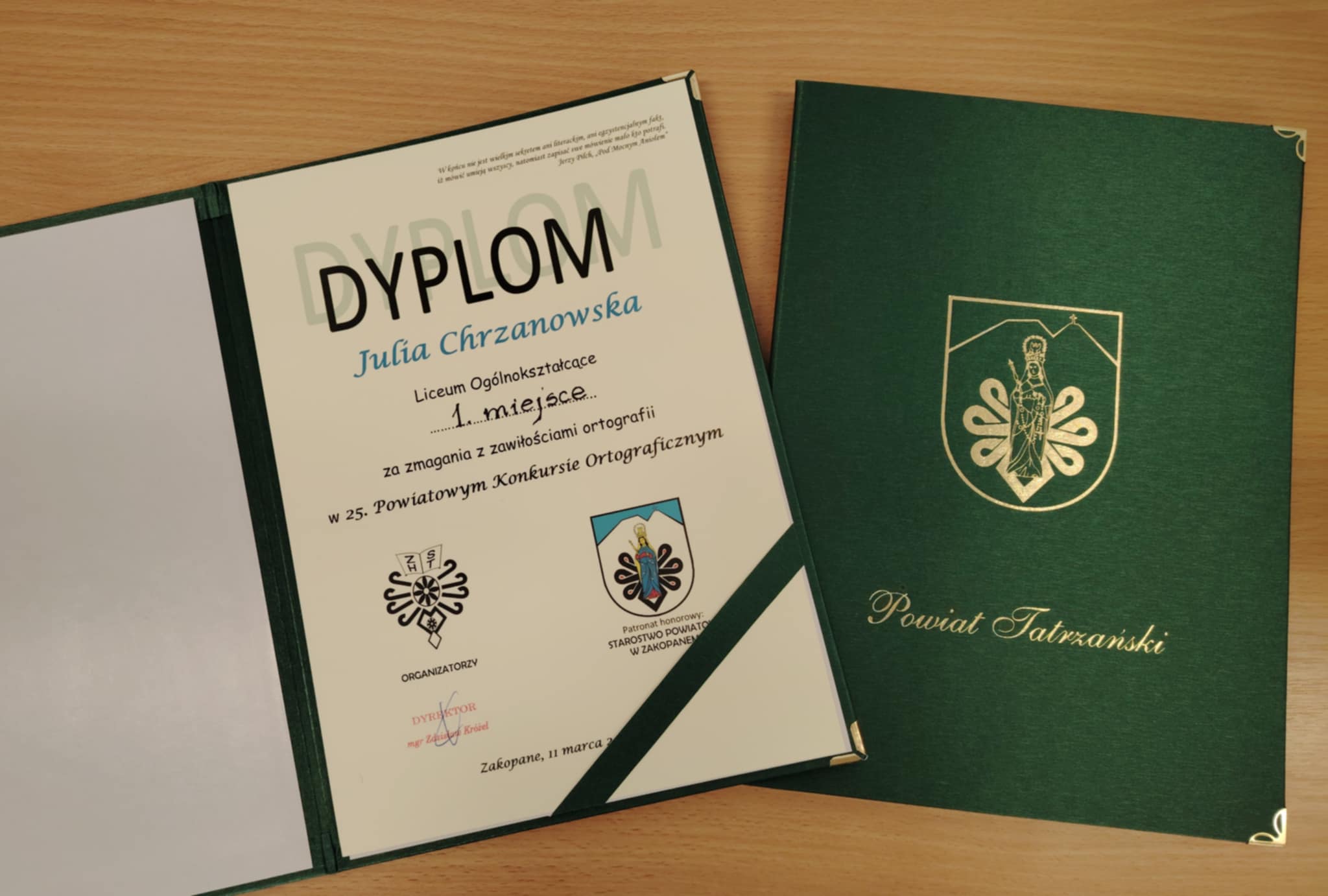 W dniu 11. marca 2026 r. odbył się w naszej szkole Konkurs Ortograficzny, nad którym honorowy patronat objęło Starostwo Powiatu Tatrzańskiego.